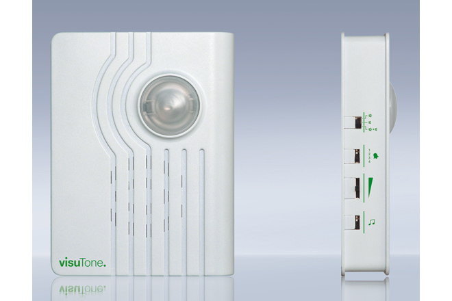 visuTone je kompaktní signalizační zařízení, velké asi jako kniha. Signalizuje Vám, zda vyzvání telefon nebo domovní zvonek - signalizace je oznamována silným akustickým tónem, záblesky a nebo současnou kombinací tónu i záblesku.
